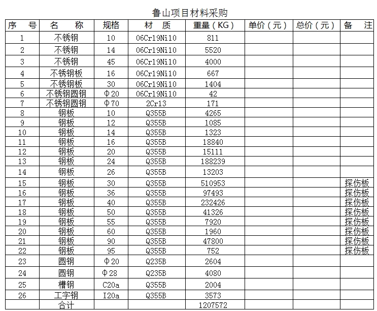 1.所有材料必需為國標大廠產(chǎn)品, 理論計重,不接受開平板報價,30及以上厚度鋼板需要提供探傷板,型材為大廠小負差(3-5)產(chǎn)品。(安鋼、舞鋼、邯鋼等)