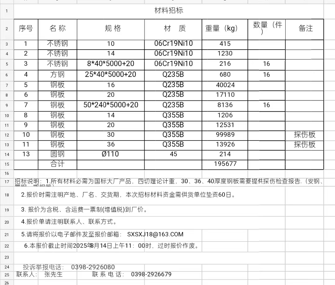8月12日:材料采購招標(biāo)